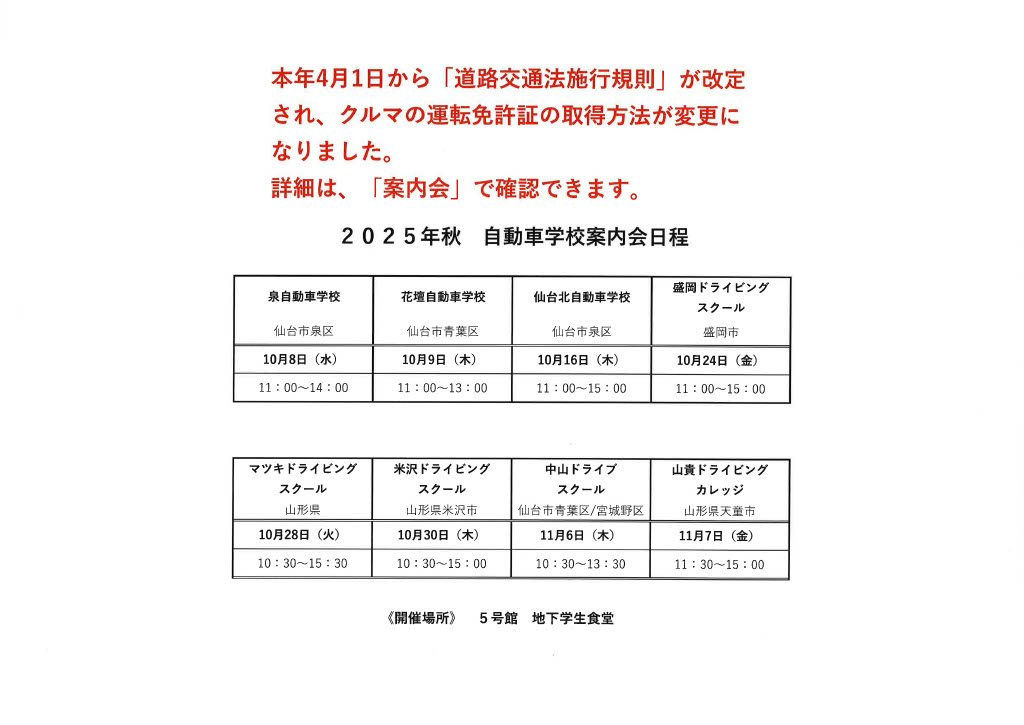 本年4月1日から「道路交通法施行規則」が改定され、クルマの運転免許証の取得方法が変更になりました。詳細を「案内会」で確認できます。